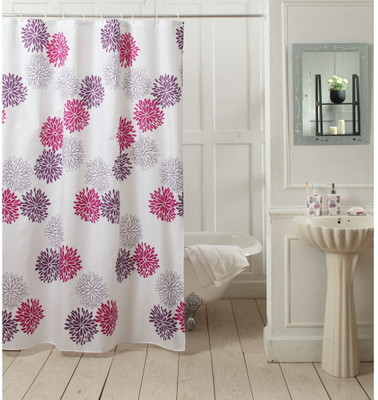 The shower curtain features a white background that allows light to shine through the shower area even when the curtain is drawn. It is also designed with fresh purple and pink flowers that break away from the plain look of your bathroom.