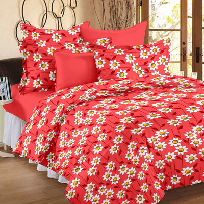 Ahmedabad Cotton Cotton Floral Single Bedsheet 1 Single Bedsheet, 1 Pillow Cover, Red- Flipkart Home Decor & Accessories Online