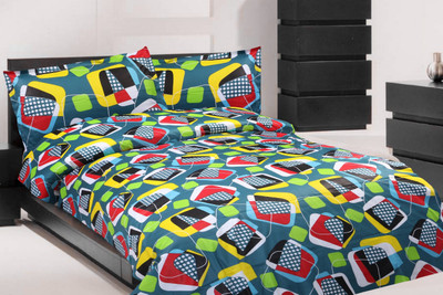 Ahmedabad Cotton Cotton Geometric Single Bedsheet 1 Single Bedsheet & 1 Pillow Cover, Blue, Yellow, Red- Flipkart Home Decor & Accessories Online