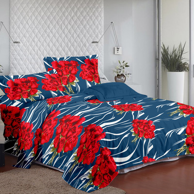 Ahmedabad Cotton Cotton Floral Single Bedsheet 1 Single Bedsheet, 1 Pillow Cover, Blue, Red- Flipkart Home Decor & Accessories Online