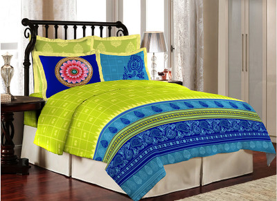Bombay Dyeing Cotton Printed Double Bedsheet 1 Double Bedsheet, 4 Pillow Covers, Green||Blue- Flipkart Home Decor & Accessories Online