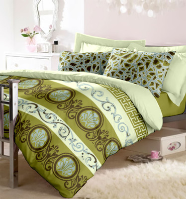 Bombay Dyeing Cotton Floral Double Bedsheet 2 Pillow Covers, 1 Bedsheet, Green||White- Flipkart Home Decor & Accessories Online