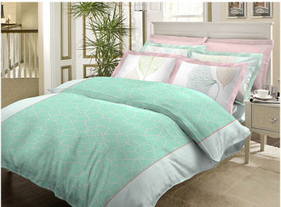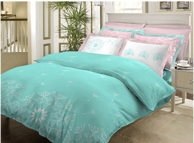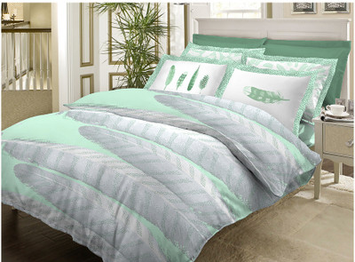 Bombay Dyeing Cotton Printed Double Bedsheet 1 Bedsheet, 4 Pillo w Covers, Light Green, White- Flipkart Home Decor & Accessories Online
