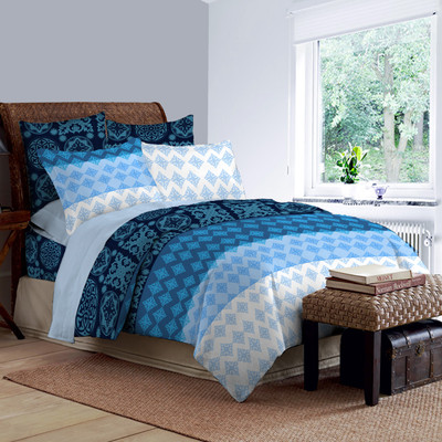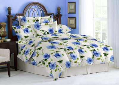 Bombay Dyeing Cotton Printed Double Bedsheet 2 Pillow Covers, 1 Bedsheet, Blue||White- Flipkart Home Decor & Accessories Online