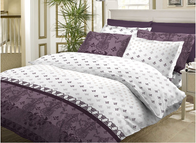 Bombay Dyeing Cotton Printed Double Bedsheet 1 Bedsheet, 2 Pillow Covers, Purple||White- Flipkart Home Decor & Accessories Online