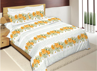 Bombay Dyeing Cotton Printed Double Bedsheet 1 Bedsheet, 2 Pillow Covers, White||Orange||Green- Flipkart Home Decor & Accessories Online