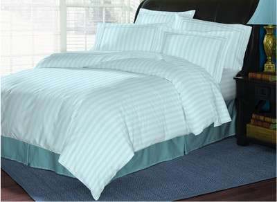 Spaces by Welspun Cotton Striped Double Bedsheet 1 Bedsheet, 4 Pillo w Covers, Blue- Flipkart Home Decor & Accessories Online