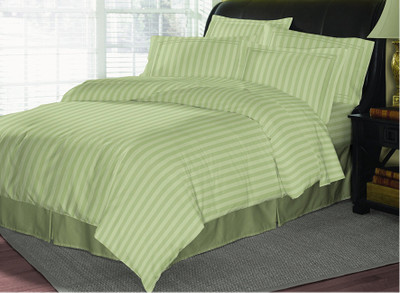 Spaces by Welspun Cotton Striped Double Bedsheet 1 Bedsheet, 4 Pillo w Covers, Green- Flipkart Home Decor & Accessories Online