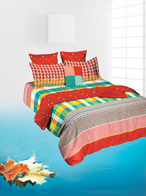 Tangerine Cotton Geometric King Bedsheet 1 Bedsheet, Multicolor- Flipkart Home Decor & Accessories Online