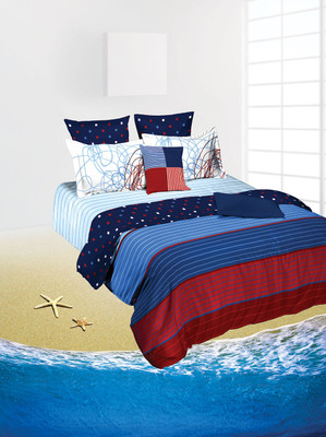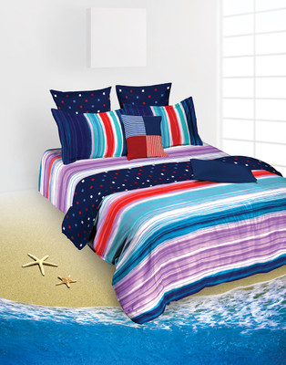 Tangerine Cotton Striped King Bedsheet 1 Bedsheet, Red, White, Blue- Flipkart Home Decor & Accessories Online