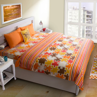 Search House This Cotton Graphic Double Bedsheet 1 Bedsheet, 2 Pillow Covers, Orange on Amazon