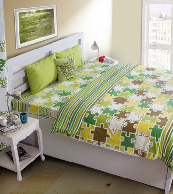 House This Cotton Graphic Double Bedsheet 1 Bedsheet, 2 Pillow Covers, Green- Flipkart Home Decor & Accessories Online