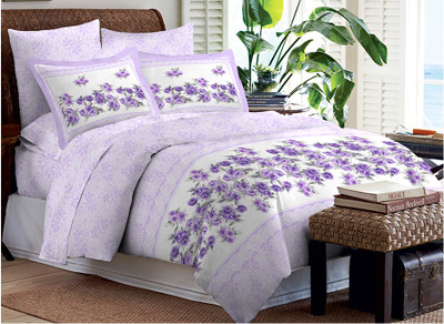 Bombay Dyeing Cotton Floral Double Bedsheet 1 Double Bedsheet, 2 Pillow Covers, White||Purple- Flipkart Home Decor & Accessories Online