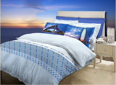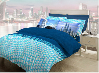 Bombay Dyeing Cotton Printed Double Bedsheet 2 Pillow Covers, 1 Bedsheet, Blue, White- Flipkart Home Decor & Accessories Online