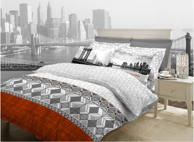Bombay Dyeing Cotton Geometric Double Bedsheet 2 Pillow Covers, 1 Bedsheet, Orange||White||Grey- Flipkart Home Decor & Accessories Online