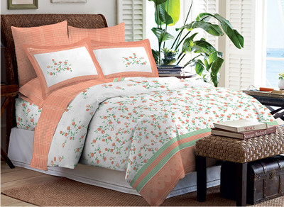 Bombay Dyeing Cotton Floral Double Bedsheet 1 Double Bedsheet, 2 Pillow Covers, White||Orange- Flipkart Home Decor & Accessories Online
