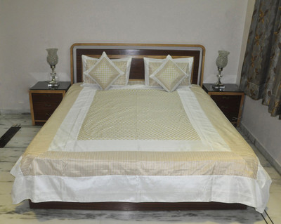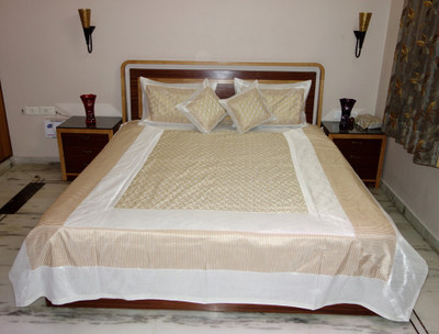 This Silk Double Bed Cover set. Bed Cover in home decor beautiful Attractive Design of India. The product represents a good example of traditional craftsmanship of Rajasthan. With matching pillow and cushion covers This double bed cover set enhances the home decor and embellishes the bed room with grace. Product Usage These double bed sheets can be used both as a Bedsheets as well as a Bedcovers. These possess charm to attract your family members, or guests at one go if used in the dining room. Disclaimer: The item being handmade, the fine design, pattern and color tone of the product may vary slightly from that shown in the image. However, there would not be any compromise in quality.