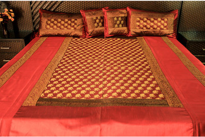 Ramabhakta Silk Geometric Double Bedsheet 1 Bedsheet, 2 Pillow Covers, 2 cusion coveres, Multicolor- Flipkart Home Decor & Accessories Online