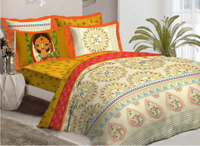 Bombay Dyeing Cotton Printed Double Bedsheet 1 Double Bedsheet, 2 Pillow Cover, Orange- Flipkart Home Decor & Accessories Online