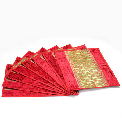 Jodhaa Velvet and Brocade Pack of 8 Table Placemat Red, Gold, Fiber- Flipkart Home Decor & Accessories Online