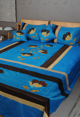 Rajrang Silk Floral Double Bedsheet 1 Bedsheet, 2 Pillow Covers, 2 Cushion Covers, Blue- Flipkart Home Decor & Accessories Online
