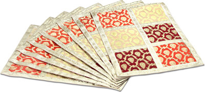 A Set Of 8 Table Mats In Red/ Gold patch Tissue Weave Enhanced With Fine Red & Gold Brocade Border On Both Sides. The Mat Is Lined With 100 % Cotton Fabric.