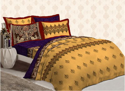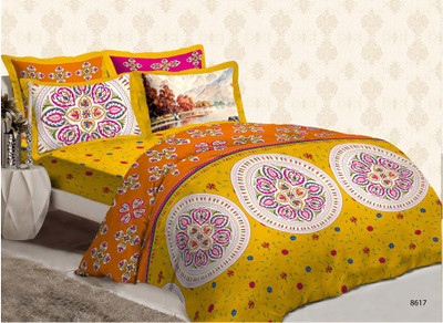 Bombay Dyeing Cotton Printed Double Bedsheet 2 Pillow Covers, 1 Bedsheet, Purple||Yellow- Flipkart Home Decor & Accessories Online