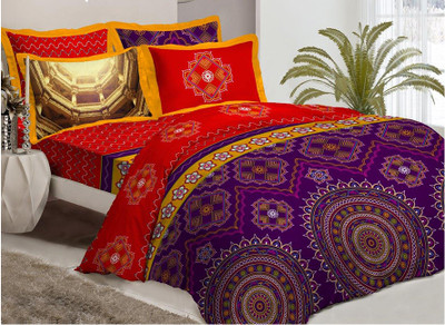 Bombay Dyeing Cotton Printed Double Bedsheet 2 Pillow Covers, 1 Bedsheet, Red||Blue||Orange- Flipkart Home Decor & Accessories Online