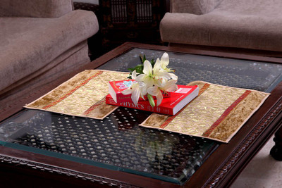 Jodhaa Velvet and Brocade Pack of 8 Table Placemat Beige, Gold, Fiber- Flipkart Home Decor & Accessories Online