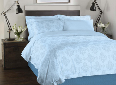 Spaces by Welspun Cotton Printed Double Bedsheet 4 Pillow Covers, 1 Bedsheet, Blue- Flipkart Home Decor & Accessories Online
