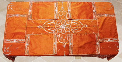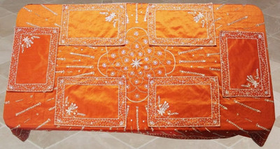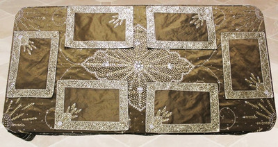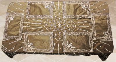This Specially Hand Made Beaded With Place Mat Shows the Artmanship of indian Tradition. It gives a Royal Feel to your Room and Dinning. This a prefect Bedding and Table Range.