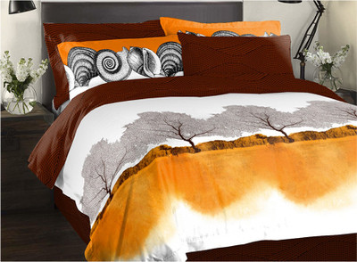 Spaces by Welspun Cotton Printed Double Bedsheet 4 Pillow Covers, 1 Bedsheet, Brown||White||Yellow- Flipkart Home Decor & Accessories Online