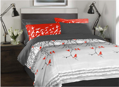 Spaces by Welspun Cotton Printed Double Bedsheet 1 Bedsheet, 4 Pillow Covers, Grey||Red||Grey- Flipkart Home Decor & Accessories Online