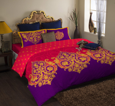 Portico New York Satin, Cotton Printed Double Bedsheet 2 Cushion Covers, 1 Bedsheet, 4 Pillo w Covers, Brown||Purple||Beige- Flipkart Home Decor & Accessories Online