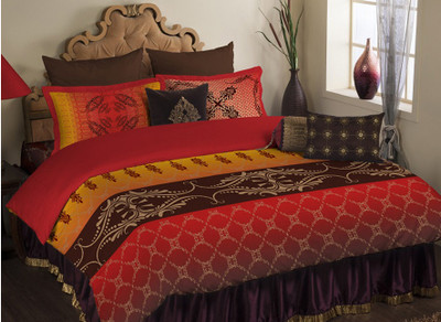 Portico New York Satin, Cotton Printed Double Bedsheet 2 Cushion Covers, 1 Bedsheet, 4 Pillow Covers, Red||Yellow||Brown- Flipkart Home Decor & Accessories Online