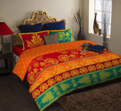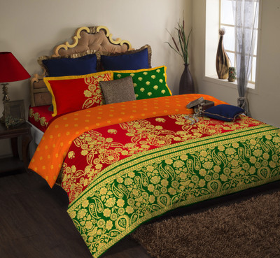 Search Portico New York Cotton, Satin Self Design Double Bedsheet Orange||Red||Green on Amazon