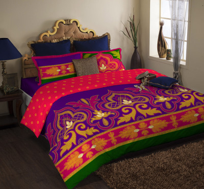 Portico New York Cotton, Satin Printed Double Bedsheet 4 Pillo w Covers, 1 Bedsheet, 2 Cushion Covers, Pink||Brown||Green- Flipkart Home Decor & Accessories Online