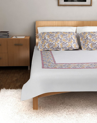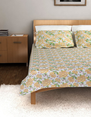 Ratan Jaipur Cotton Floral Double Bedsheet 1 Bedsheet, 2 Pillow Covers, Yellow- Flipkart Home Decor & Accessories Online