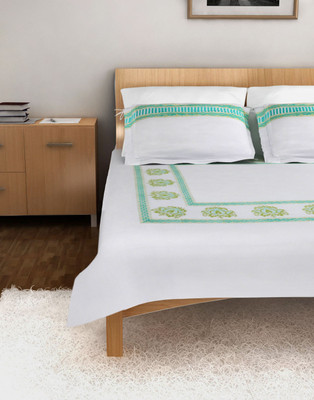 Ratan Jaipur Cotton Printed Double Bedsheet 1 Bedsheet, 2 Pillow Covers, Green- Flipkart Home Decor & Accessories Online