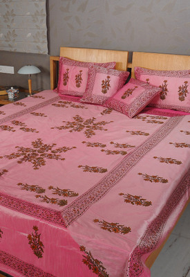 Rajrang Silk Floral Double Bedsheet 1 Bedsheet, 2 Pillow Covers, 2 Cushion Covers, Pink- Flipkart Home Decor & Accessories Online