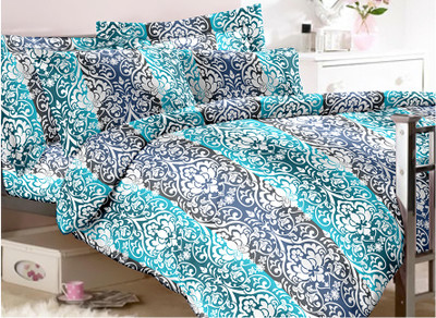 Silver Threads Cotton Printed Double Bedsheet 4 Pillows, 2Double Bedsheets, Blue, Pink- Flipkart Home Decor & Accessories Online