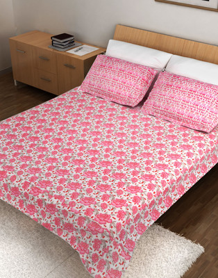 Ratan Jaipur Cotton Floral Double Bedsheet 1 Bedsheet, 2 Pillow Covers, Pink- Flipkart Home Decor & Accessories Online