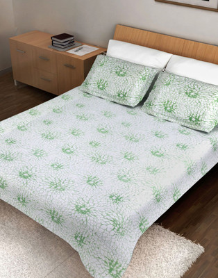 Ratan Jaipur Cotton Floral Double Bedsheet 1 Bedsheet, 2 Pillow Covers, Green- Flipkart Home Decor & Accessories Online