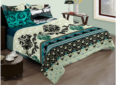 Raymond Cotton Printed Double Bedsheet 1 Bedsheet, 4 Pillow Covers, Green||Black||White- Flipkart Home Decor & Accessories Online