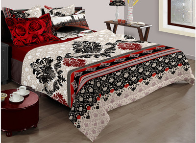 Raymond Cotton Printed Double Bedsheet 1 Bedsheet, 4 Pillow Covers, Beige||Black||Red- Flipkart Home Decor & Accessories Online