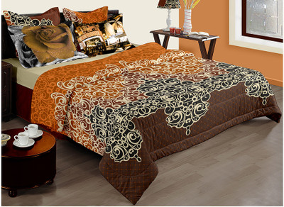 Search Raymond Cotton Printed Double Bedsheet 1 Bedsheet, 4 Pillo w Covers, Orange||Brown||Black on Amazon