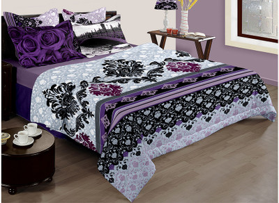 Raymond Cotton Printed Double Bedsheet 1 Bedsheet, 4 Pillow Covers, Blue||Purple||Black- Flipkart Home Decor & Accessories Online
