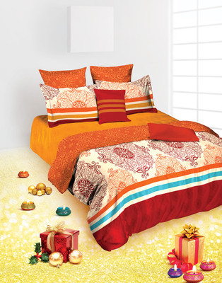 Tangerine Cotton Geometric King Bedsheet 1 Bedsheet, Multicolor- Flipkart Home Decor & Accessories Online
