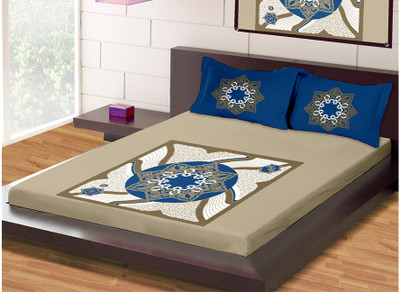 Raymond Cotton Printed Double Bedsheet 1 Bedsheet, 2 Pillow Covers, Beige||Blue- Flipkart Home Decor & Accessories Online