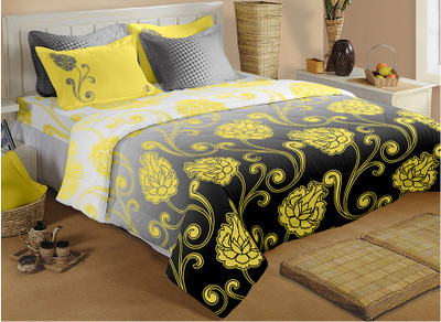 Raymond Cotton Printed Double Bedsheet 4 Pillo w Covers, 1 Bedsheet, Yellow||Grey||Black- Flipkart Home Decor & Accessories Online